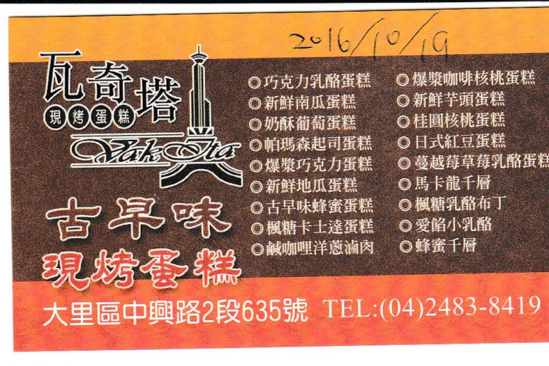 - /[菜單MENU][古早味][推薦] 瓦奇塔 --- 現烤蛋糕.彌月蛋糕.口味眾多 (2016年10月19日)