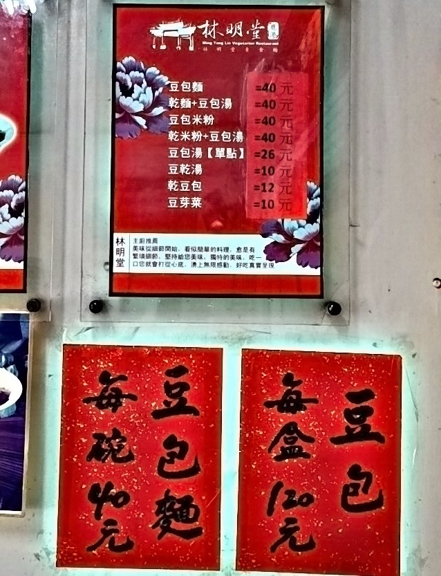 [菜單MENU] 林明堂素食麵 - 價格 彰化 鹿港 素食 老店 日期:2022/11/01 大家好 我來分享菜單了 店名: 林明堂素食麵 地址: 505彰化縣鹿港鎮介壽路三段66號 電話: 04 - 778 5571 給大家參考囉 菜單關鍵字: 林明堂素食麵 價格 彰化 鹿港 素食 老店 豆包 乾麵 豆芽菜 2022年11月01日: 老招牌的老店~當地很有名喔 人超多的拉~ 素食麵好吃~ 乾麵與豆包湯是一起賣的 也有賣豆包喔~ 好吃~