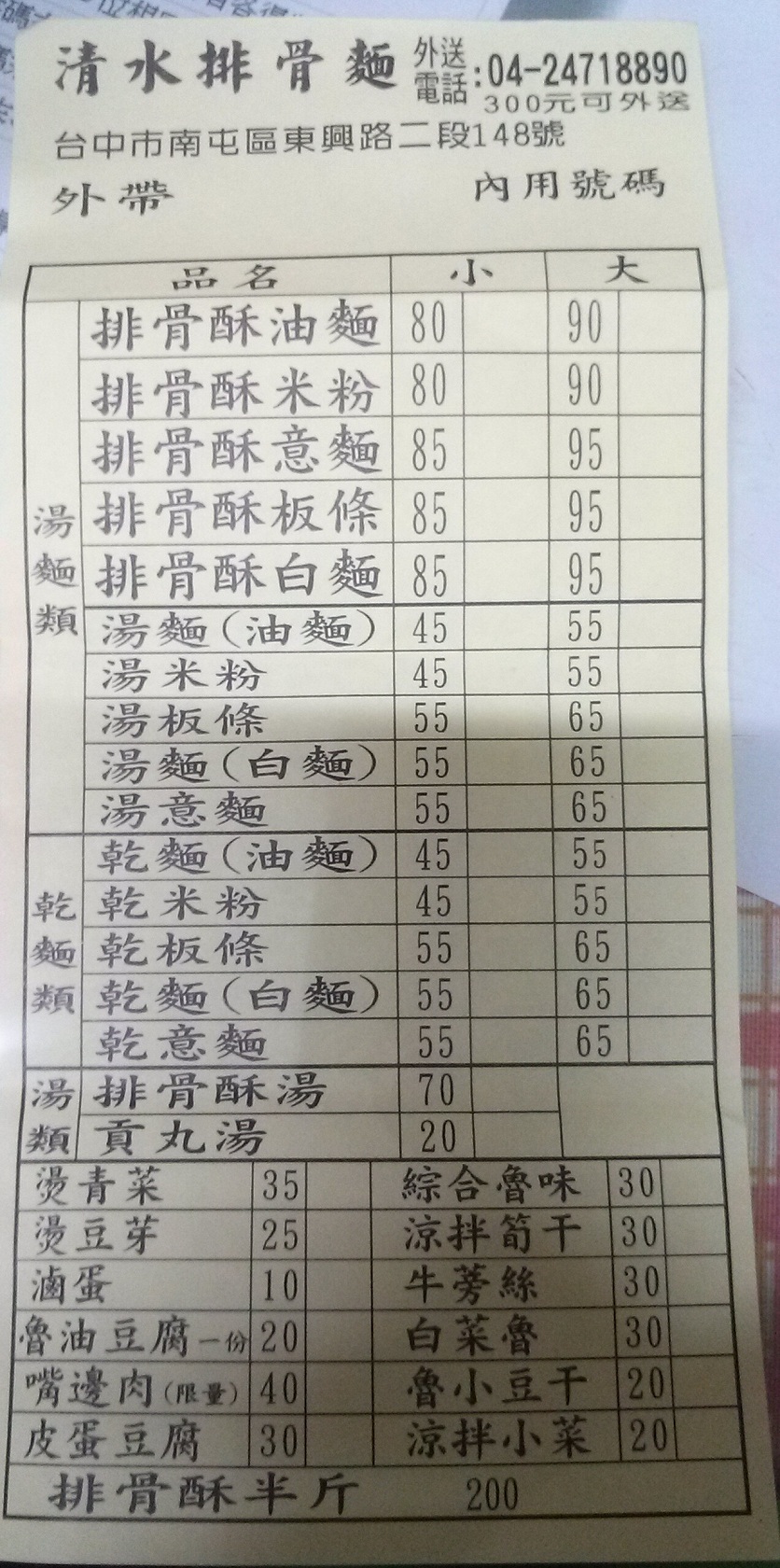 [台中][菜單][MENU]清水排骨麵