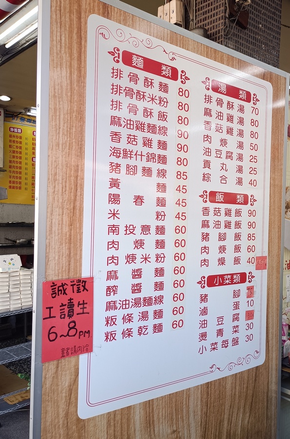 [菜單MENU] 南門排骨酥麵 - 台中 價格 中興大學 排骨酥麵 米粉 陽春麵 肉羹 豬腳麵線 麻油雞飯 麻醬麵 日期:2024/02/19 大家好 我來分享菜單了 店名: 南門排骨酥麵 地址: 402台中市南區南門路89號電話號碼: 04 2285 8878 給大家參考囉 菜單關鍵字: 南門排骨酥麵 台中 價格 中興大學 排骨酥麵 米粉 陽春麵 肉羹 豬腳麵線 麻油雞飯 麻醬麵 南投意麵 粄條 海鮮什錦 香菇雞飯 2024年02月19日: 老婆愛吃哈 菜色相當豐富~ 有麻醬麵哩讚喔