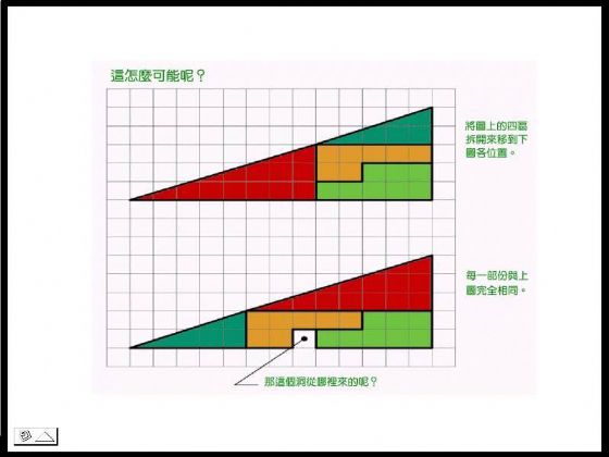 那“三角形B”怎麼又出現一塊空隙沒有補上呢?再看下面這個圖形就又恍然大悟了!