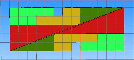 奇怪現象:三角形A和B的面積是32.5,而四個基本部分面積和確是32,不相等啊? OMG!這是神馬情況?難道求三角形面積的公式出了問題?這可是歐幾里得老人家畢生的心血啊!理性告訴我,數學是嚴禁而完美的學科,求三角形面積的公式沒有問題。導致求出面積結果不一樣的秘密到底隱藏在哪兒呢?真相只有一個,三角形有問題。