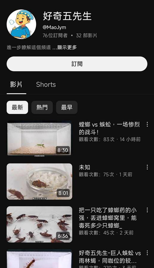 因為一開始是拍 “昆蟲實驗” 影片起家