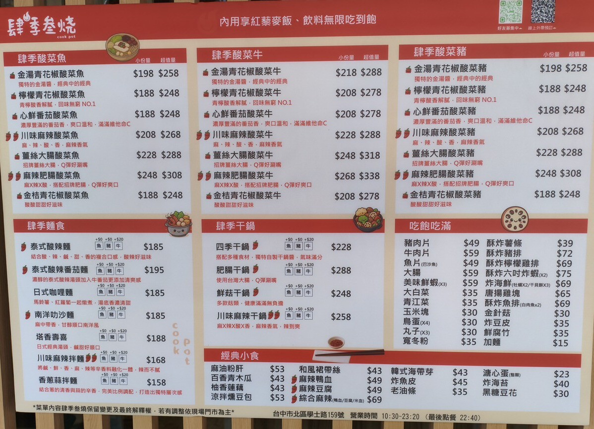 菜單關鍵字: 肆季叁燒 台中 中國醫 酸菜魚 自助 有小癮