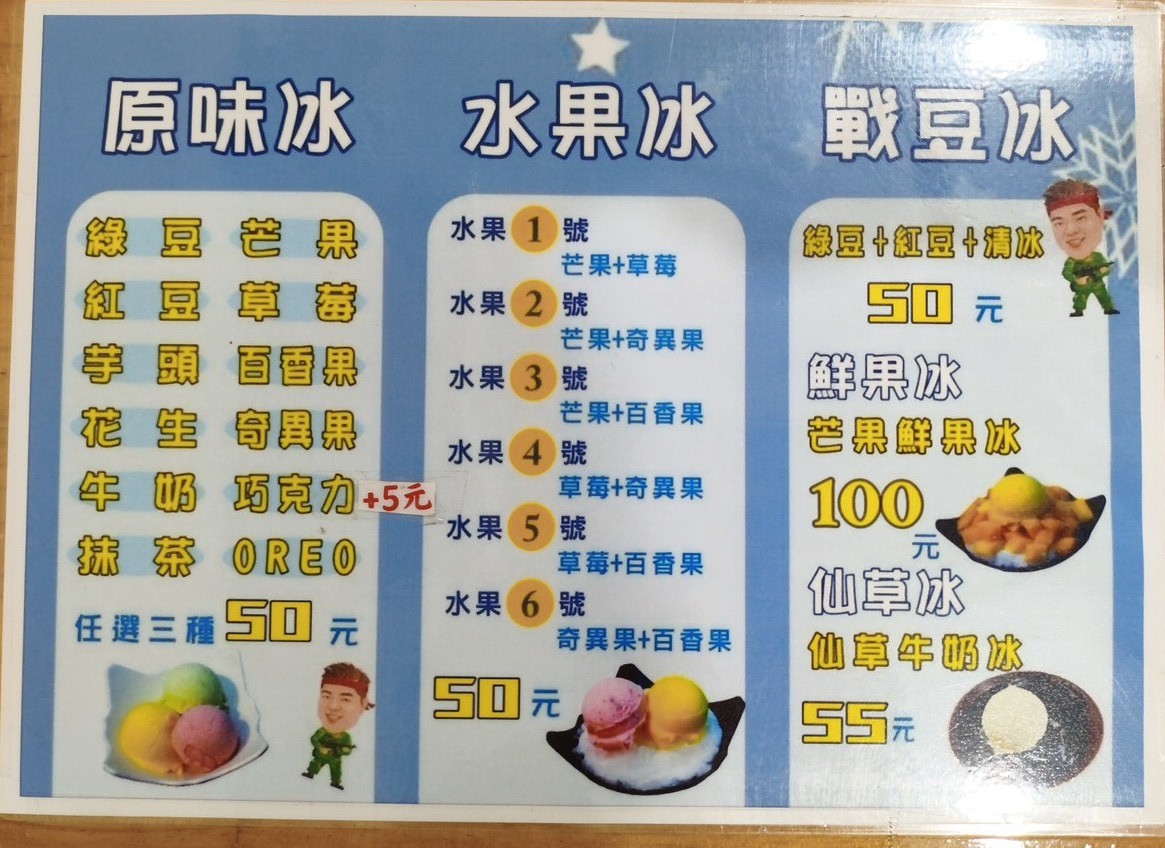 [菜單MENU] 戰豆冰 - 台中 一中街 冰品 芒果冰 日期:2025/11/06 大家好 我來分享菜單了 店名: 戰豆冰 給大家參考囉 菜單關鍵字: 戰豆冰 台中 一中街 冰品 芒果冰 雪花冰 冰淇淋 椰果 綠豆 紅豆 2025年10月23日: 地址: 404臺中市北區三民路三段134巷16之3號 電話號碼: 0917 664 870 這個冰店在巷弄內沒有很好找到喔~ 現在冰店很難經營 能夠看到冰店算是很難得了 價格算是相當平易近人 非常難得 雖然才50元 但是分量其實很多 吃的很飽~~~ 而且也不錯吃 不過還是不能太常吃冰啦~~