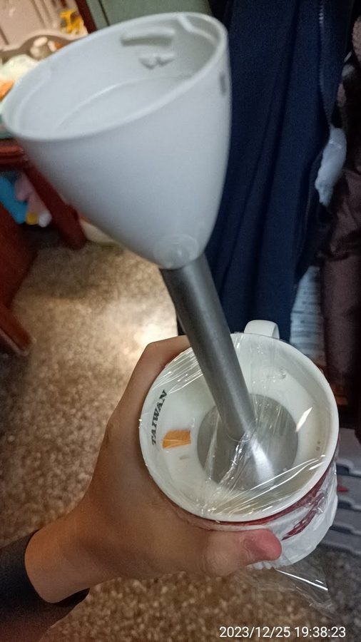 (20231225 保鮮膜+馬克杯+攪拌棒 打木瓜牛奶)