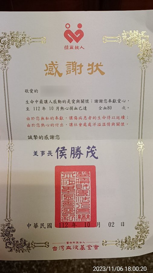 (20231106 捐血獎狀)