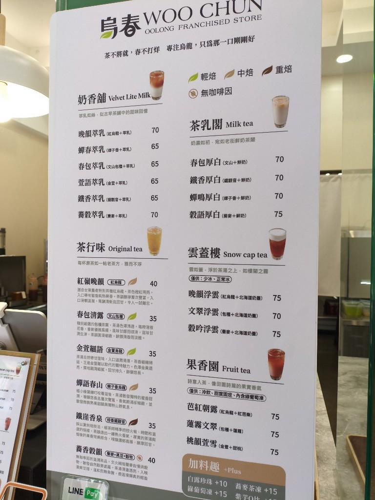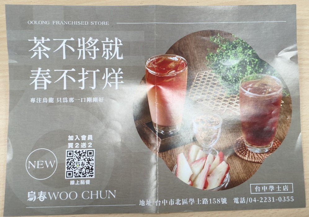 [菜單MENU] 烏春 Woo Chun - 台中 價格 厚白 奶香 烏龍茶 浮雲 日期:2026/03/13 大家好 我來分享菜單了 店名: 烏春 Woo Chun 給大家參考囉 菜單關鍵字: 烏春 Woo Chun 台中 價格 厚白 奶香 烏龍茶 浮雲 台中學士店 2026年03月13日: 地址: 404臺中市北區學士路158號 電話號碼: 04 2231 0355 這算是最近新開的飲料店 用環保杯真的不錯 還可以省五元 主打應該是烏龍茶吧 奶類實在都超級貴 這也算是台灣的特有現象... 珍珠好吃喔~