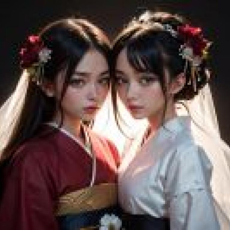 Japanese kimono style, two young girls wearing traditional Japanese clothing posture, with veils on their heads, chen Chi, cosplay, a realistic painting, aestheticism
