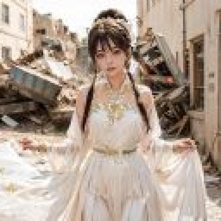 Chinese Hanfu, a woman wearing a white dress stands in the destroyed building