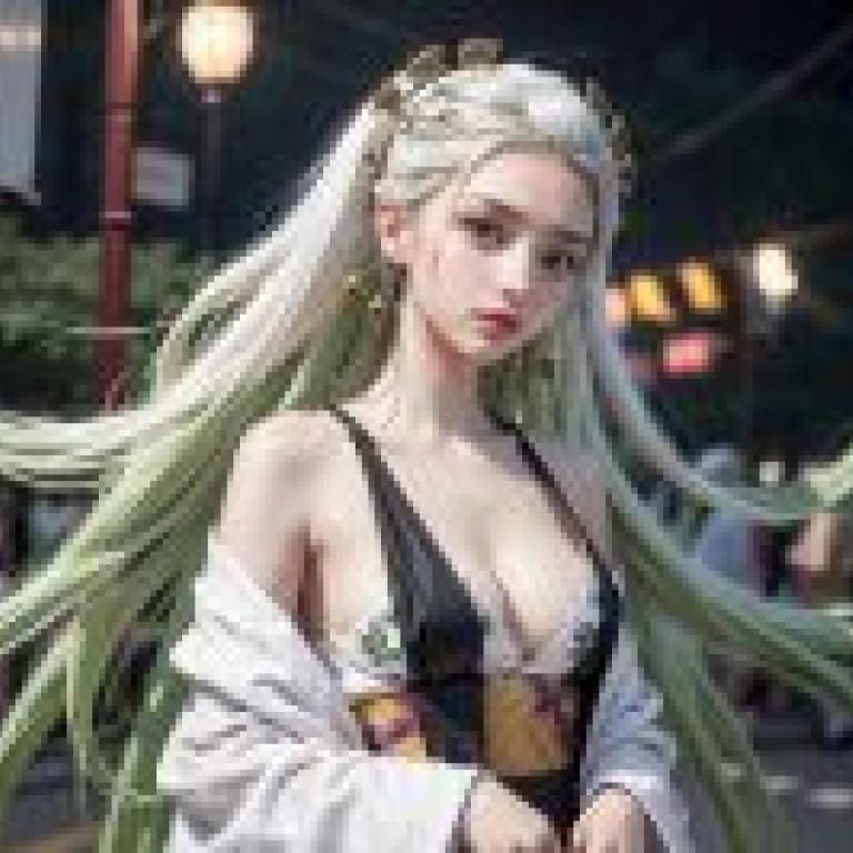 The blade of ghosts swims in Guo, live -action version, falling girl, a long -haired woman, someone has walked on the corner of the street, street lights, fan -shaped play, role -playing, marble sculpture, fantasy art