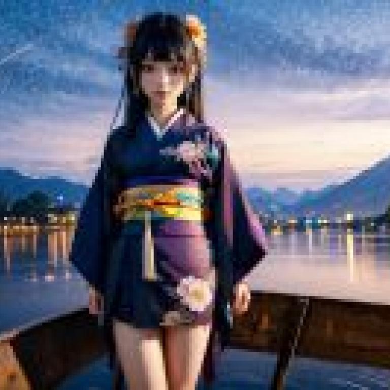 Live anime, hell girl, Yan Moai, kimono, lake and mountains, night dreams