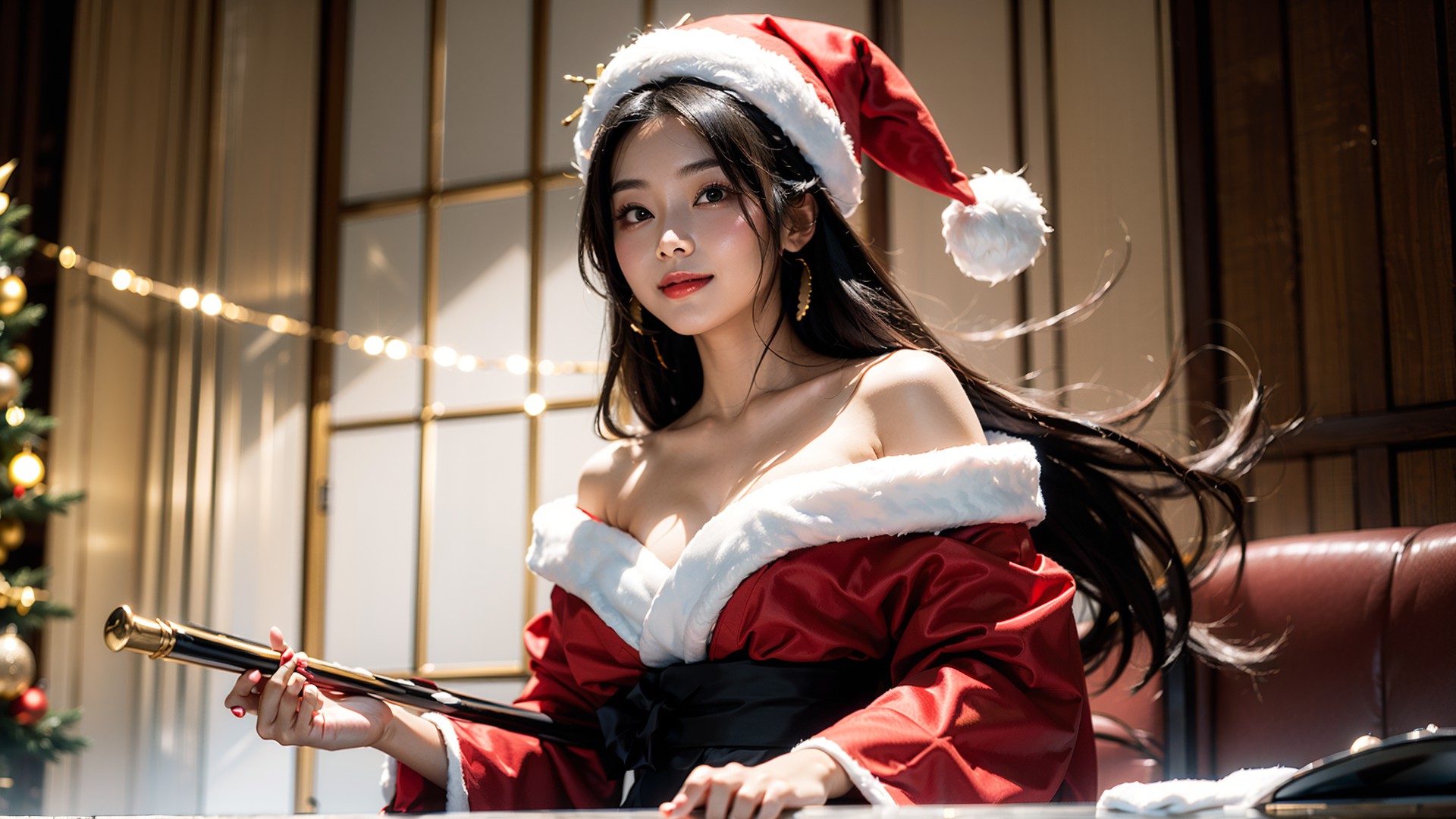 Computer tablecloth, beautiful photo, Christmas beauty, a woman wearing a mobile phone, Santa Claus, and gorgeous Chinese model wearing Santas clothes, from League of Legends, joy, festival, wearing Santa Hat, wearing Santa Hat, wearing Writing Santas hat, Christmas, Chinese girl, little girl, Ulzzang