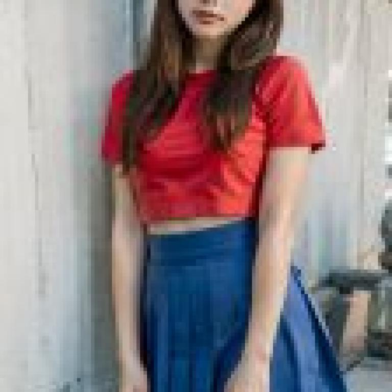 Mobile phone wallpaper, female Mario, sexual transformation of Mario, mario girl, realism, physics: the smallest midriff ever, a woman wearing a red shirt and a blue skirt, midriff, beautiful midriff, the smallest midriff ever, wearing Sexy crop top with Murakazumi style 3/4, cute Korean actress wearing crop top and mini skirt, red waist - long hair