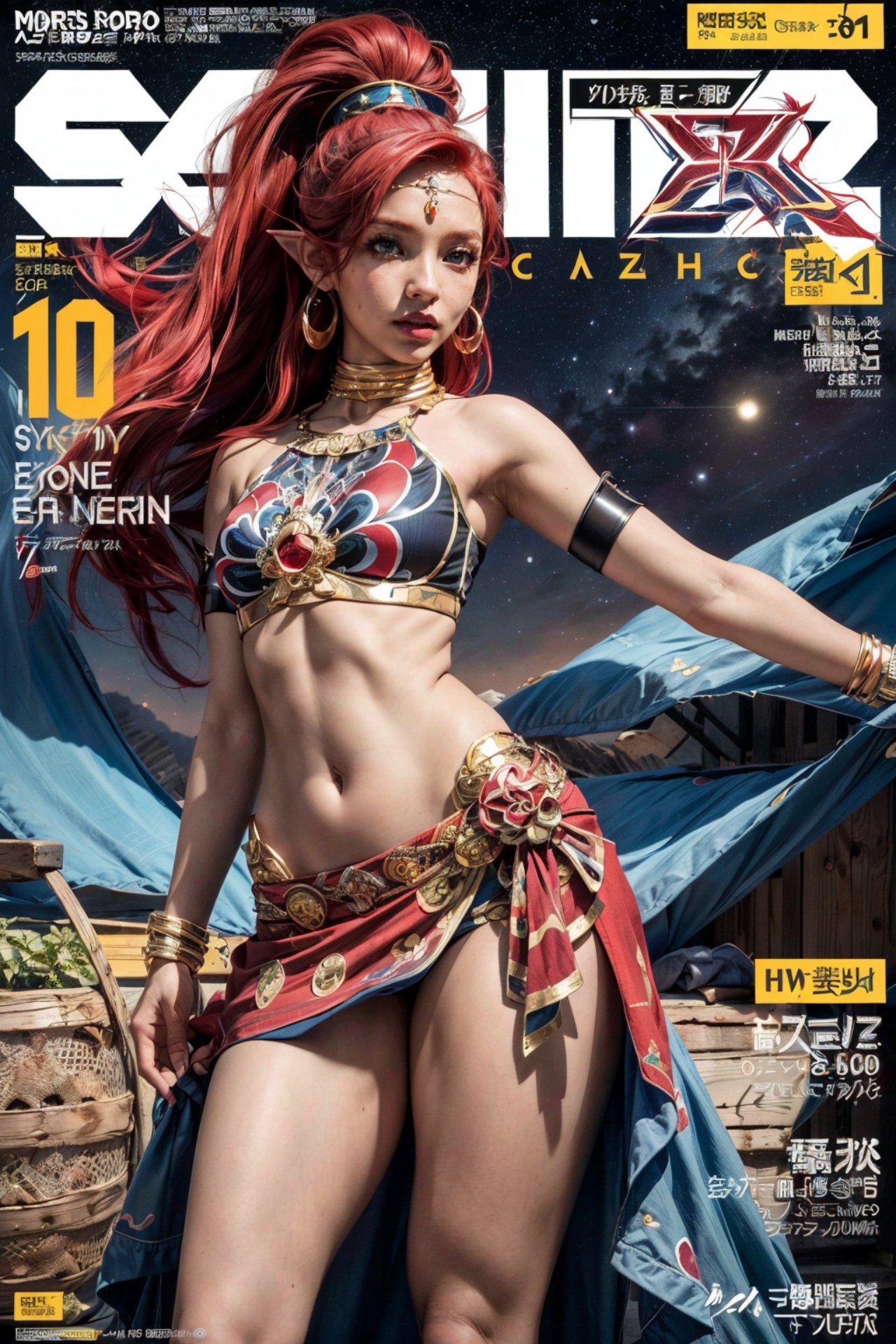 Mobile wallpaper, Urbosa, Breath of the Wild, realistic, dragon crown, role play magazine cover, Zero Dawn, fantasy style clothing, stunning cover magazine, nezha, zenescope, jrpg Aztec Streets Stylish, gorgeous cosplay, very beautiful female barbarian, Alex Taza, a red-haired woman on the cover of magazine, Gamer Magazine Cover, Cover Magazine