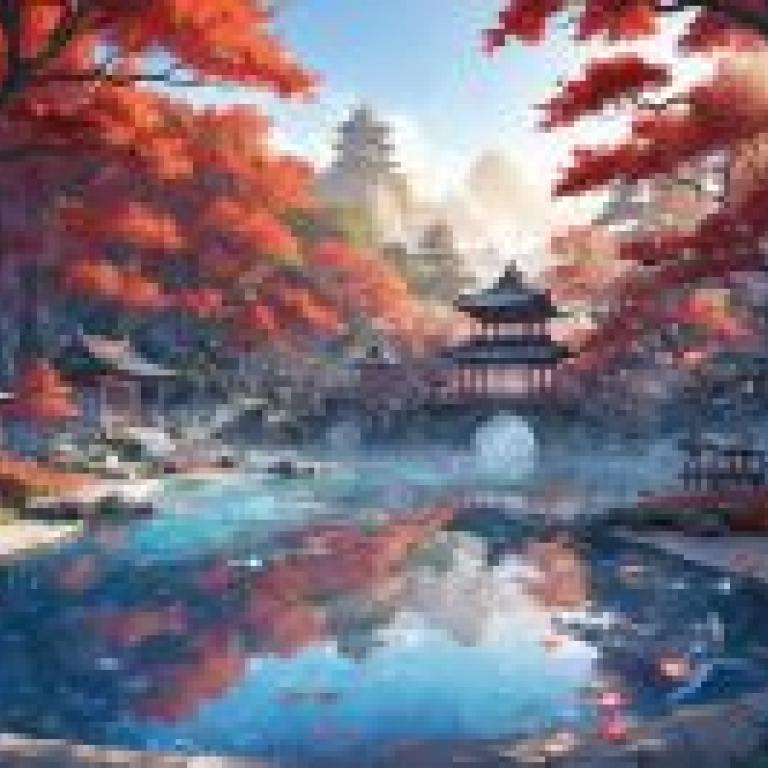 Computer wallpaper, ancient fantasy temple in the woods, anime, anime nature wallpaper, anime nature, Thomas Kinkade, anime landscape wallpaper, landscape artwork, anime landscape, ross tran. Landscape background, anime beautiful peaceful scene, anime landscape concept art, oriental wallpaper, landscape art detailed, Japanese garden with pond painting