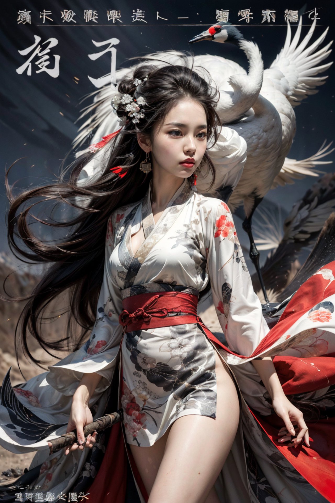 Mobile phone wallpaper Chinese style and crane realistic gorgeous girl fantasy of the oriental palace