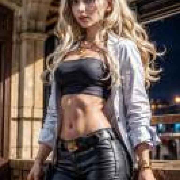 Mobile wallpaper, Ratotil Anthreya, The Rising of the Shield Hero, realistic, the protagonist of the painting is a young blonde woman. She exuded a chic and stylish vibe in a black crop top and matching black leather pants. A gold chain belt cinched her waist, adding a touch of elegance to her outfit. She wore a purple headscarf on her head, which contrasted sharply with her blonde hair. The building has a large window and a door, suggesting it may be a public or commercial space. Her left hand rested casually on her hip, further emphasizing her confident stance. It’s a snapshot that leaves the viewer to imagine this woman’s personality and the world she inhabits.