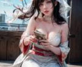Mobile wallpaper, Aguri Onishi, realistic, a woman in red and white traditional clothing.