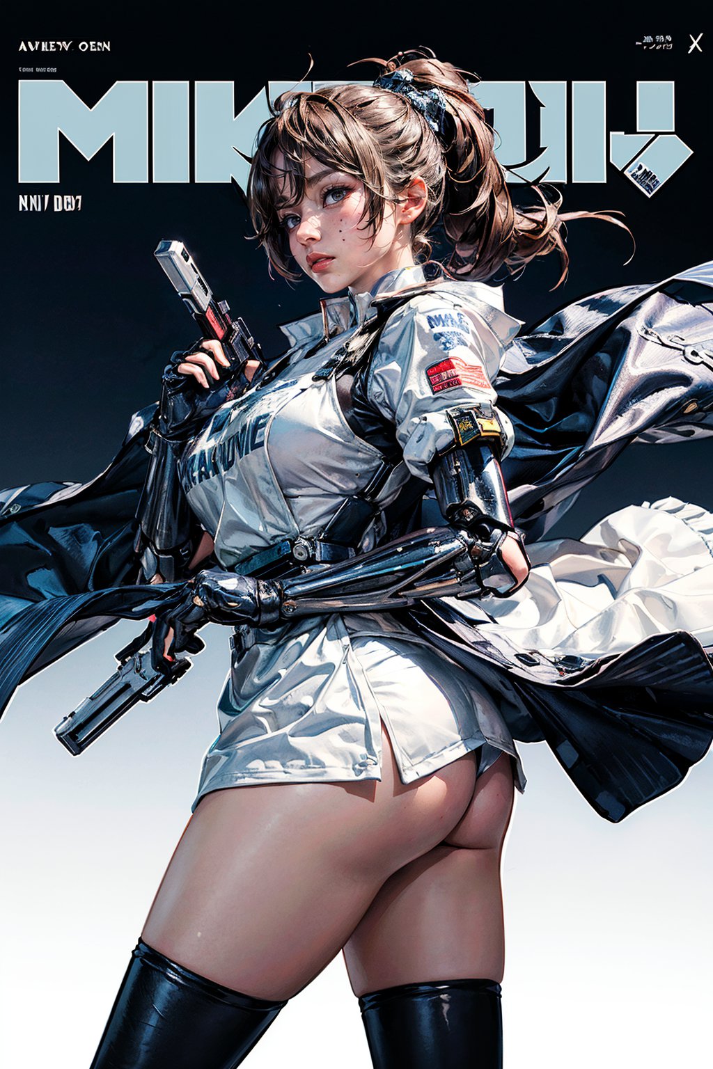Mobile wallpaper,Battle Maid,Realistic,A lady with a gun on the cover of a magazine, Mikoli.
