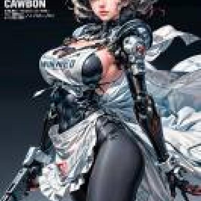 Mobile wallpaper,Battle Maid,Realistic,This image features an eye-catching illustration of anime characters against a magazine cover. This character is at the center of the scene, dominating it with her ample breasts and long hair flowing down her back. Her outfit includes a white apron with the word WINNER printed on it and a pair of black gloves. In her right hand she holds a sword, symbolizing power and authority. The words MANGA NEWS MEZAI are prominently displayed on the cover, indicating the name of the publication. Additionally, the word CAWBOON is visible, although the context or meaning is unclear in the image. The use of color, especially the contrast between the white apron and the dark background, further highlights the characters presence. The image does not provide any other text or context besides what is mentioned.