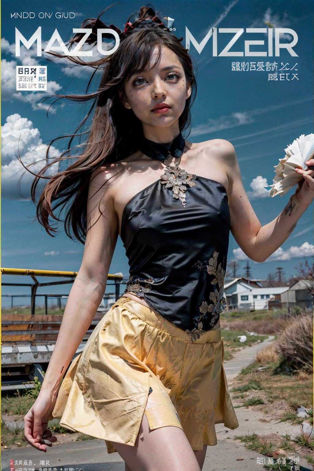 Mobile wallpaper, dudou bra bellyband, realistic, the picture is a bright cover of a magazine called MAZED on Guided. The central figure is a woman with long brown hair, dressed in a black costume with gold decorations. She was holding a white umbrella and seemed to be walking on a bridge. Her position on the bridge suggests that she is moving towards the right side of the image. The word MAZED on Guided is prominently displayed at the top of the image, showing the name of the magazine. In addition to the main body of the image, Chinese characters can be seen on the cover, although their exact translation or meaning cannot be determined from the image alone. The overall composition of the image suggests a narrative, and the woman in it could be a character in a story that unfolds in MAZED magazine on Guided.