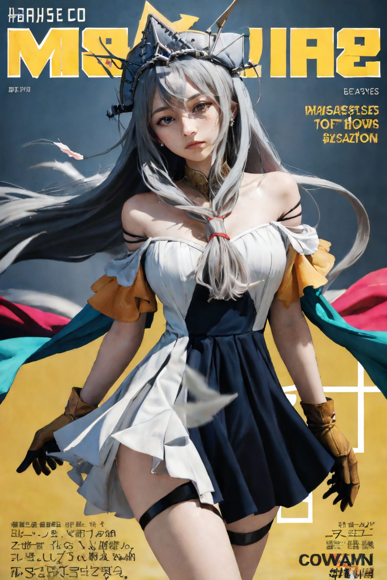 Sublimation Skadi Arknights,The image presents a striking cover of the Japanese manga magazine, Monthly Shogun. Dominating the center is a young woman with long gray hair and large breasts. Shes dressed in a blue dress adorned with yellow accents, adding a pop of color to her attire. A headband, striped in shades of pink and red, rests on her forehead, complementing the large silver earrings that dangle from her ears.The background is a vibrant mix of green and blue, with white feathers scattered throughout, creating an illusion of depth and movement. The text Monthly Shogun and Shogunjouin are prominently displayed in the top left corner, indicating the title of the magazine and possibly the name of the featured artist or character.The bottom right corner features a signature of the artist, Kowami, adding a personal touch to the artwork. The overall composition of the image suggests its an artistic representation from Japanese manga culture.