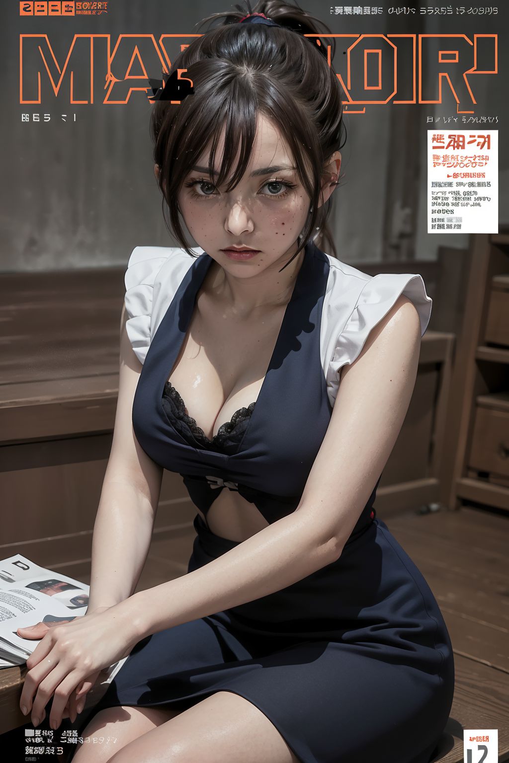 Manyuu Hikenchou Style AnyKey,The image is a cover of the Japanese magazine MAXMOR. Dominating the center of the image is a young woman, elegantly dressed in a blue dress that features a sweetheart neckline and thin straps. Her hair is styled into a chic bun, adding to her sophisticated look.She is seated on a wooden chair, which is positioned against a backdrop of a wooden bench. The setting gives off an air of tranquility and simplicity.The magazines title, MAXMOR, is prominently displayed in large white letters at the top left corner of the image. The text MAXMOR is also visible on other parts of the image, indicating that it is likely repeated throughout the cover.Additionally, there are several Japanese words scattered across the image, possibly indicating different sections or features within the magazine. These include Poncho, Gingerbread, and Christmas. Their context and significance within the magazine are not immediately clear from the image alone.Overall, the image presents a serene scene centered around the fashionably dressed woman, with elements that suggest the variety of content one might find within the pages of MAXMOR.