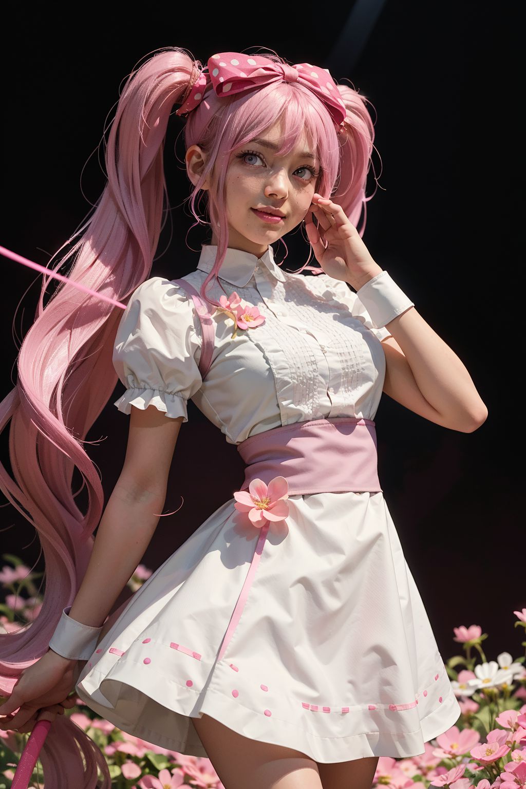 Omori Sweetheart,In the heart of a vibrant garden, a young girl stands as the central figure. Her eyes, full of curiosity and wonder, are locked onto something beyond the frame of the image. Shes clad in a playful ensemble that includes a pink bow adorning her hair and a matching pink dress. The dress is detailed with a white collar and sleeves, adding a touch of elegance to her attire.In her left hand, she holds a pink flower, perhaps a token from her adventure in the garden. The garden itself is lush and colorful, teeming with pink flowers that echo the girls outfit. The location appears to be outdoors, as suggested by the natural elements visible in the background.The image captures a moment of exploration and discovery, set against the backdrop of natures beauty. Its a snapshot of childhood innocence and joy, framed by the vibrant hues of springtime.