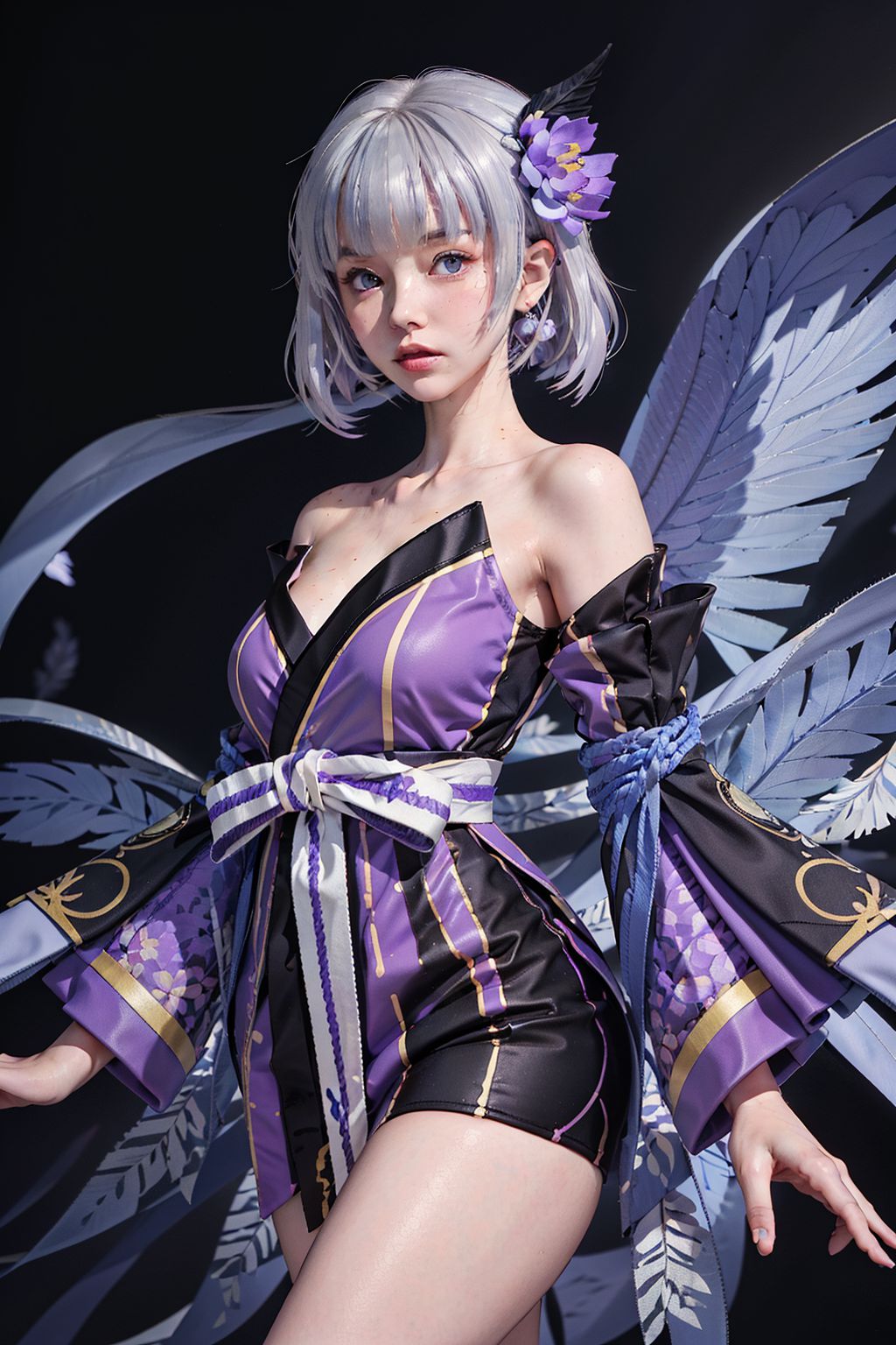 陰陽師 Onmyoji Izuna Tenma Awakening,Anime style character with purple wings.