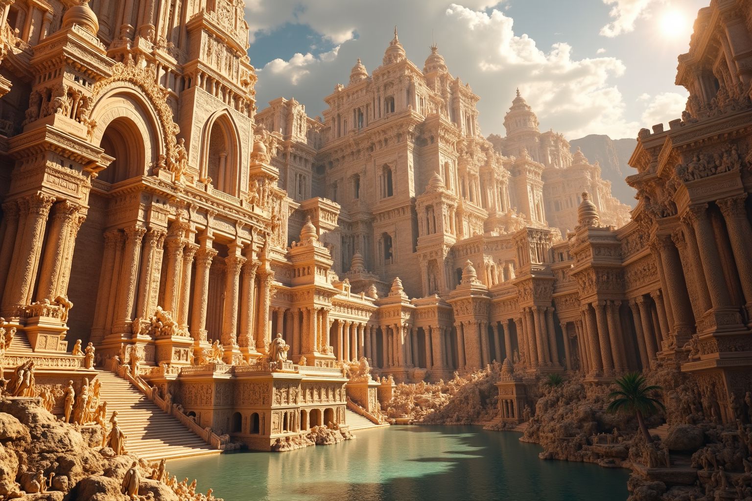 Atlantis illusion,A large building surrounded by many smaller buildings.