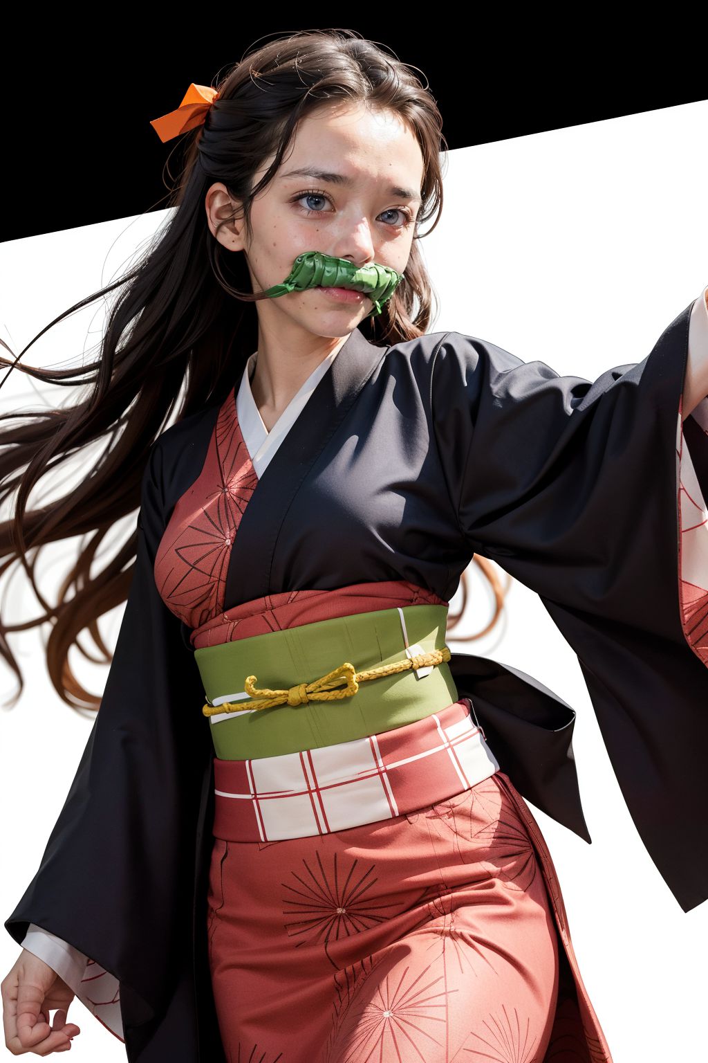 Nezuko Kamado,Demon Slayer,The girl is wearing an oriental outfit.