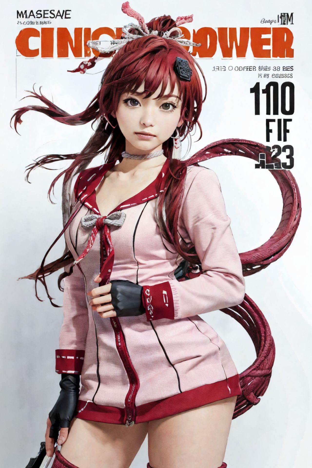 Yagyuu Juubei Hyakka Ryouran 百花繚亂SAMURAI GIRLS,The image is a cover of a magazine called Anime News Network, specifically issue 122. The cover is dominated by the illustration of a girl with vibrant red hair, dressed in a striking pink outfit that contrasts against her hair color. Her attire consists of a pink jacket adorned with a black bow and matching pink shorts. She holds a sword firmly in her right hand, poised as if ready for battle. The background is a stark white, serving to highlight the girl and the text on the cover. The magazines title, Anime News Network, is prominently displayed at the top of the cover. Below it, there are texts that read 2012 11/12 and 100 FIF 123, although their context or relevance to the image isnt clear from the image alone.The girls position in the center of the cover draws the viewers attention immediately, making her the focal point of the composition. The sword she holds adds an element of intrigue and suggests a narrative that is left to the readers interpretation. Overall, the cover appears to be a promotional piece for issue 122 of Anime News Network, with the girl in the pink outfit serving as the central figure.