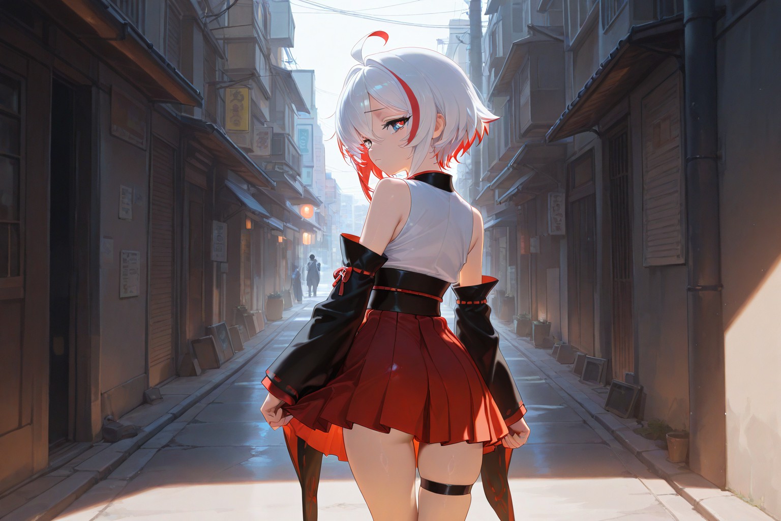Princess White Star Nelido,A woman with white hair stands on a street.