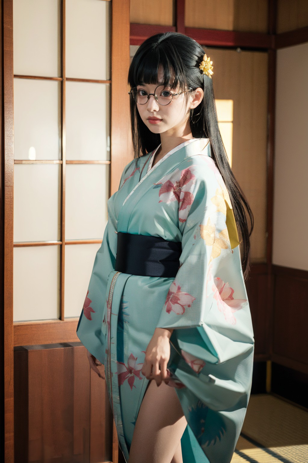 Araragi Tsukihi, Monogatari Series,A woman in a kimono is wearing glasses.