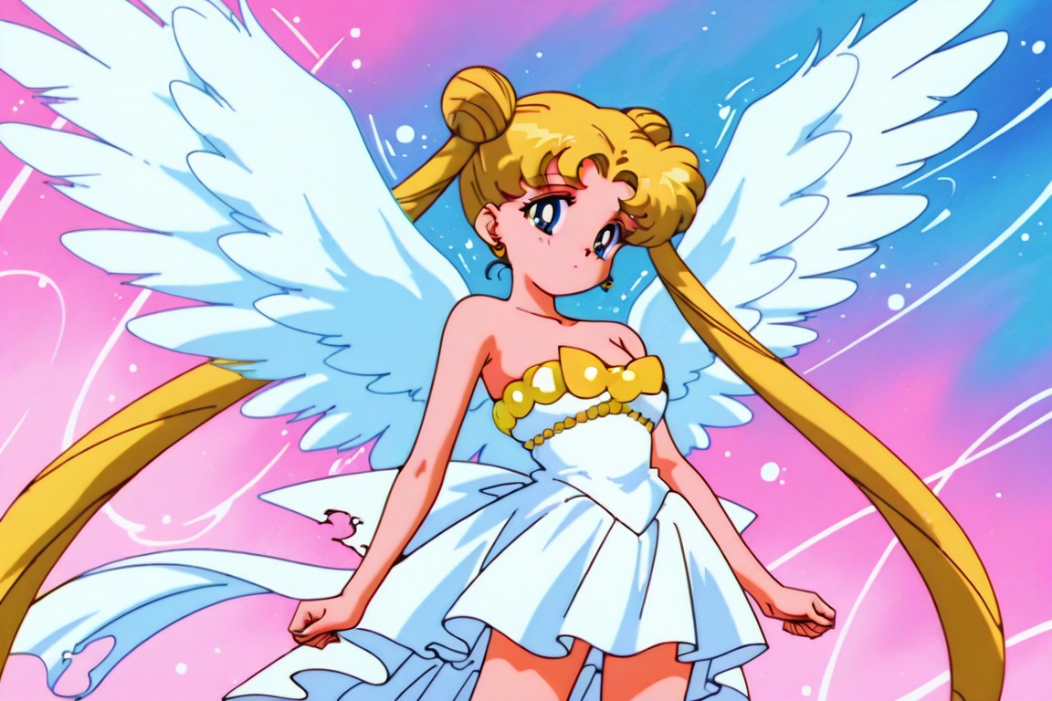 Sailor Moon Usagi Tsukino,A picture of a cartoon girl in wings with a bow.