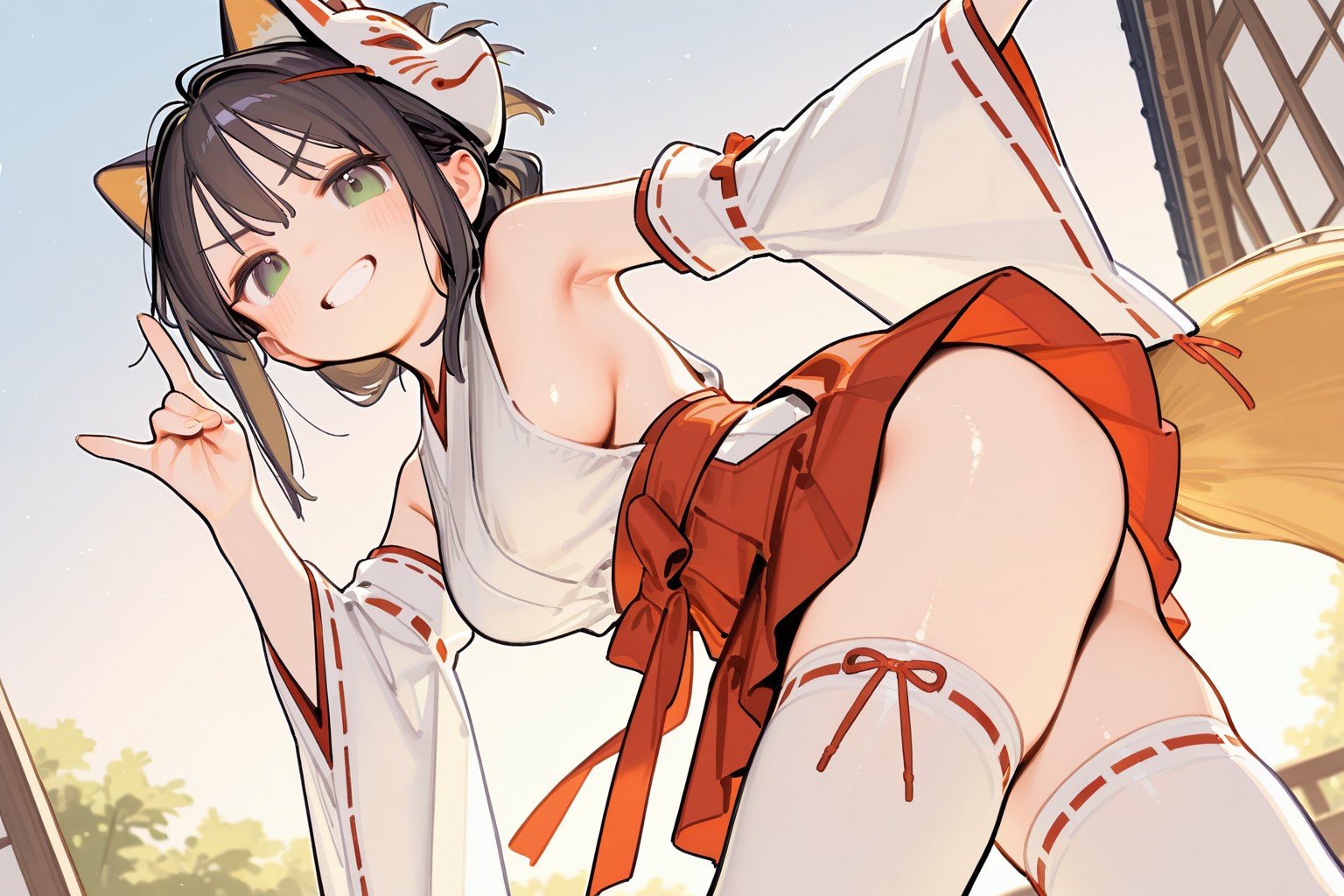 Charming witch,In the image, a young girl with black hair is captured mid-dance under an open window. Shes dressed in a white outfit adorned with red and gold accents, adding a festive touch to her appearance. Her attire also includes matching red boots that contrast with the golden color of her bow. The bow, tied neatly at her waist, adds a playful element to her overall look.Shes holding up one finger of her left hand, perhaps indicating a specific count or simply caught in a moment of joyous movement. A smile graces her face, reflecting the happiness of the moment. Her gaze is directed towards the camera, engaging the viewer in this candid capture.The background provides context to her location - an open window with a tree visible outside, suggesting shes dancing under the warmth of the sun or perhaps enjoying a cool breeze. The image beautifully captures a moment of joy and freedom, as seen through the actions of the young girl.