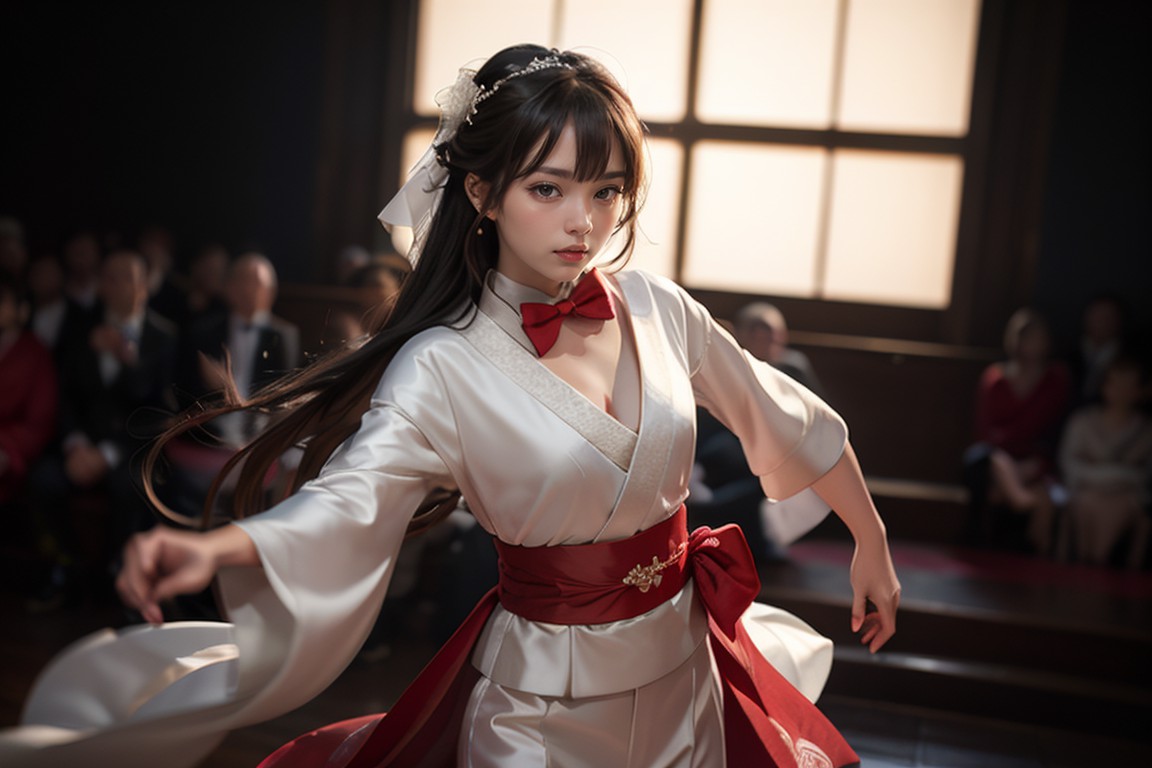 和服,一個穿著白色和紅色連衣裙的女人,脖子上有紅色的蝴蝶結,脖子上的紅色絲帶,菲·丹克斯(Fei Danxu),角色扮演,角色肖像,dau-al-art