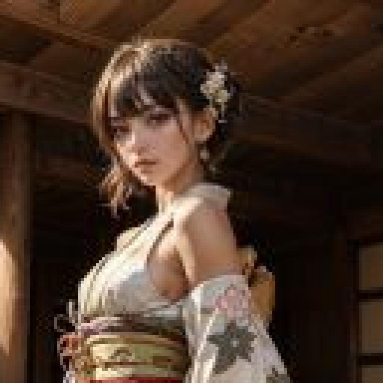 日本和服,一個和服的女人,頭髮上的一朵花在建築物前,有燈,日語,角色肖像,審美主義