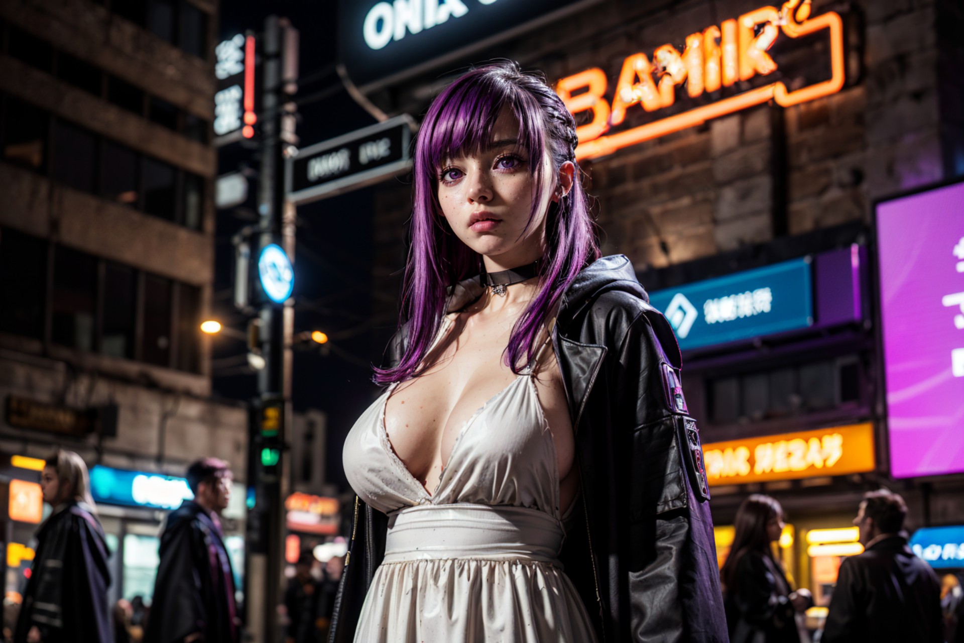 電腦桌布,費倫フェルン,Fern,葬送的芙莉蓮,寫實,非常美麗的賽博朋克武士,一個紫色頭髮的女人,穿著白色連衣裙,賽博朋克連衣裙,黑色和紫色服裝,夢幻賽博朋克女孩,賽博朋克穿著,女性賽博朋克動漫女孩,賽博朋克動漫女孩,草薙元子,賽博龐克女孩,綾香角色扮演,賽博龐克美麗女孩,河一凜子
