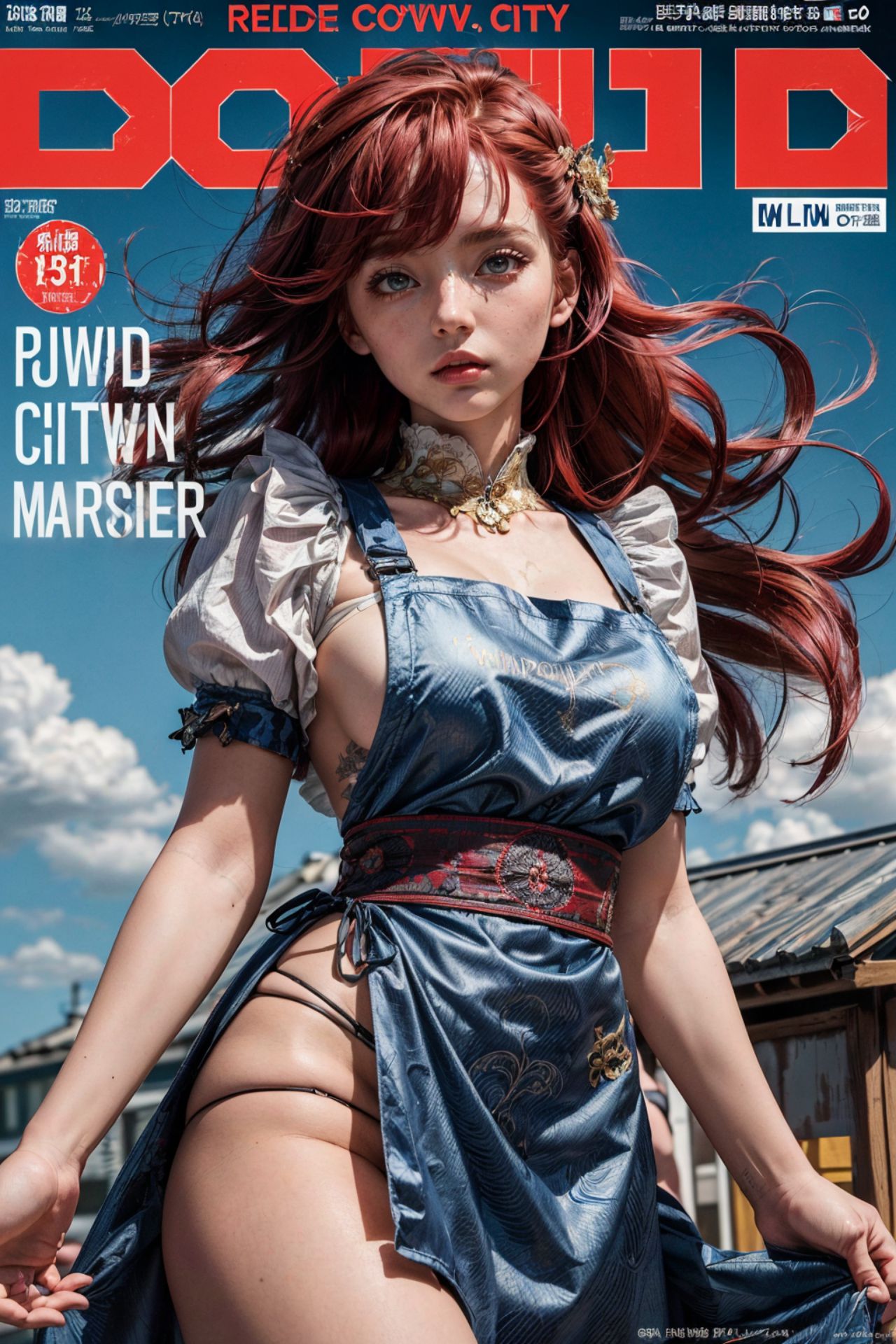 手機桌布,LnF Fantasy Aprons,寫實,一位紅髮的女孩登上了《D&D》雜誌的封面。