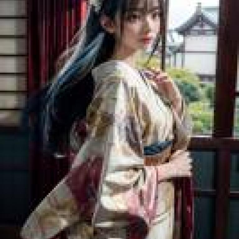 手機桌布,Mizuno Mana (水野舞菜),寫實,畫中的中心人物是一位年輕女子。她穿著傳統的日本和服,以白色為主,帶有藍色和紅色的點綴。這件和服的袖子很長,顯示它可能是正式或禮儀服裝。她的目光似乎正朝著觀看者,與觀眾建立了一種引人入勝的聯繫。這位女士所穿的傳統日本服飾表明她可能正在展示或示範這種風格的服飾。同樣地,花園景色暗示了日本的某個地點,可能表明了照片的拍攝地點。
