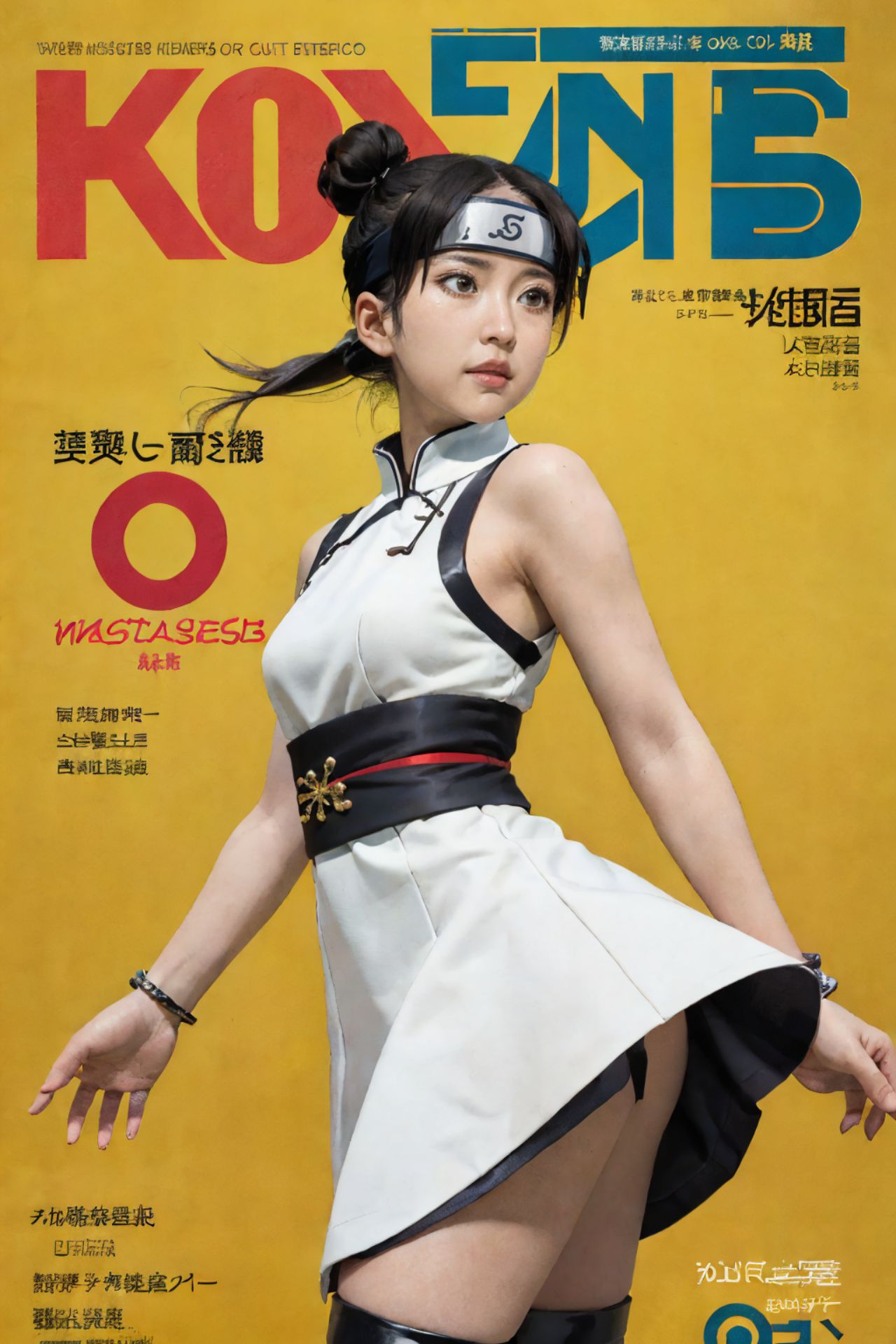 天天,鳴人,這幅圖是日本漫畫雜誌《KOY》的封面。畫面中心是一位年輕女孩,深色頭髮高高盤起,身穿白色服裝,點綴著黑色和紅色細節。她站在黃色背景前,右手自信地叉腰,左手握著劍。封面上的文字是日文,頂部是“KOY”,下方是“WASTA SEISAI”。再往下走是一段耐人尋味的文字“????C?其?蝺”,翻譯過來是“一起享用美味的麵包”。作者簽名“MIZUMONOGAKI”醒目地位於封面底部。整幅圖的構圖讓人聯想到漫畫或動畫中的場景,中心人物擺出戰鬥姿態,蓄勢待發。她手中的劍表明她可能是一位戰士或守護者。文本,特別是“WASTA SEISAI”一詞,暗示了與食物或烹飪藝術相關的主題。然而,如果沒有其他上下文,很難確定這一場景的確切故事情節。