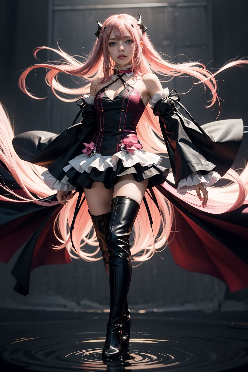 克魯魯·採佩西,終結的熾天使,一個有著粉紅色頭髮和黑色靴子的女人。