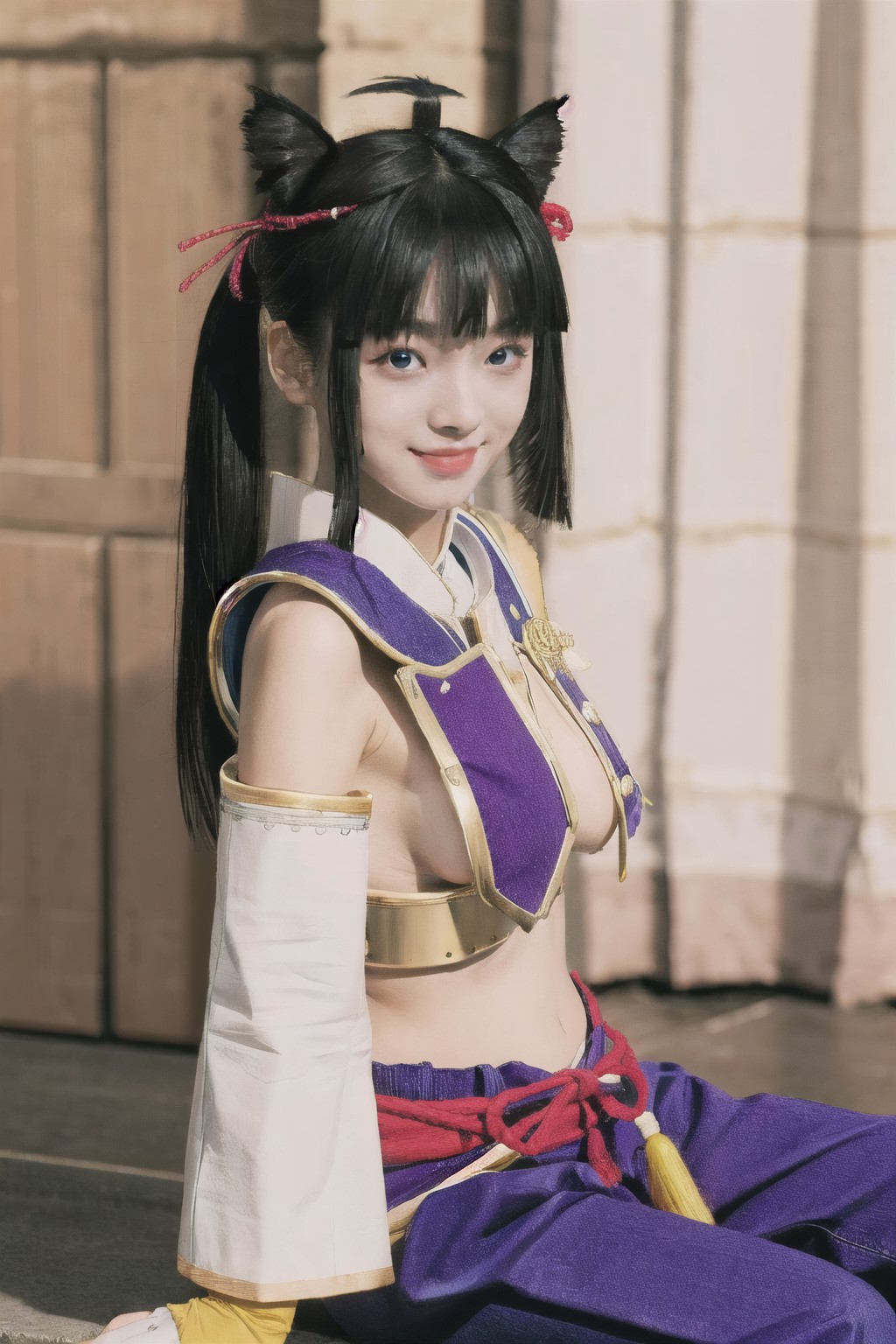 牛若丸,Fate Grand Order,身穿藍紫色動漫服裝的女孩。